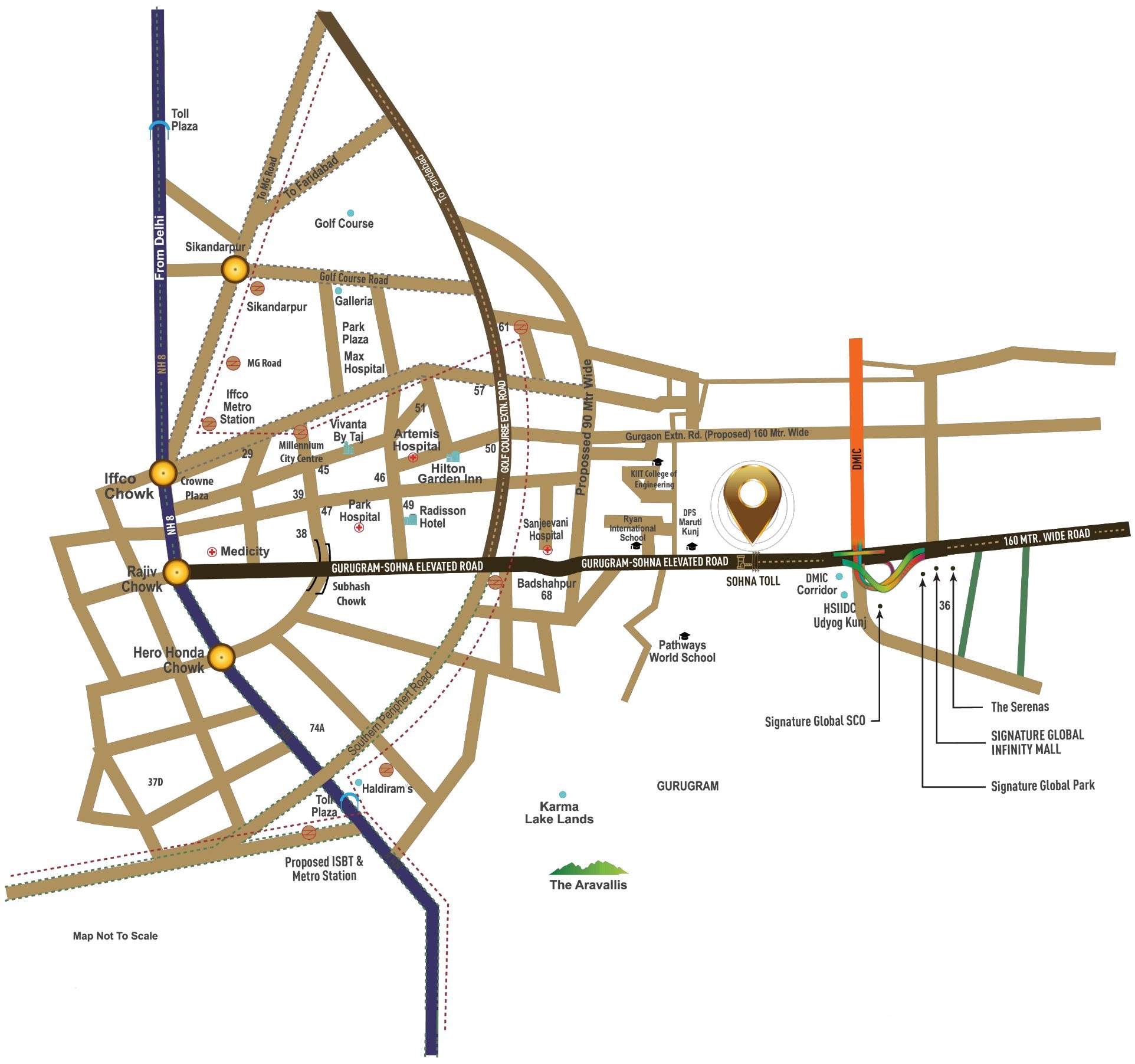 • This newly launched project will share an exceptional domestic experience in Gurugram, combining luxury, comfort, and strategic position. Nestled at the foothills of the Aravalli Hills, it provides a serene terrain with lush verdure. The design features spacious 3 & 4 BHK low-rise independent bottoms, each equipped with air-conditioned bedrooms and living areas, icing a comfortable life. Residents can enjoy top-notch amenities, including a swimming pool, gym, spa, mini theater, and- co-working spaces. It is strategically located near the Delhi- Vadodara- Mumbai Expressway and the Gurugram- Sohna Elevated Road and offers excellent connectivity to major NCR areas.